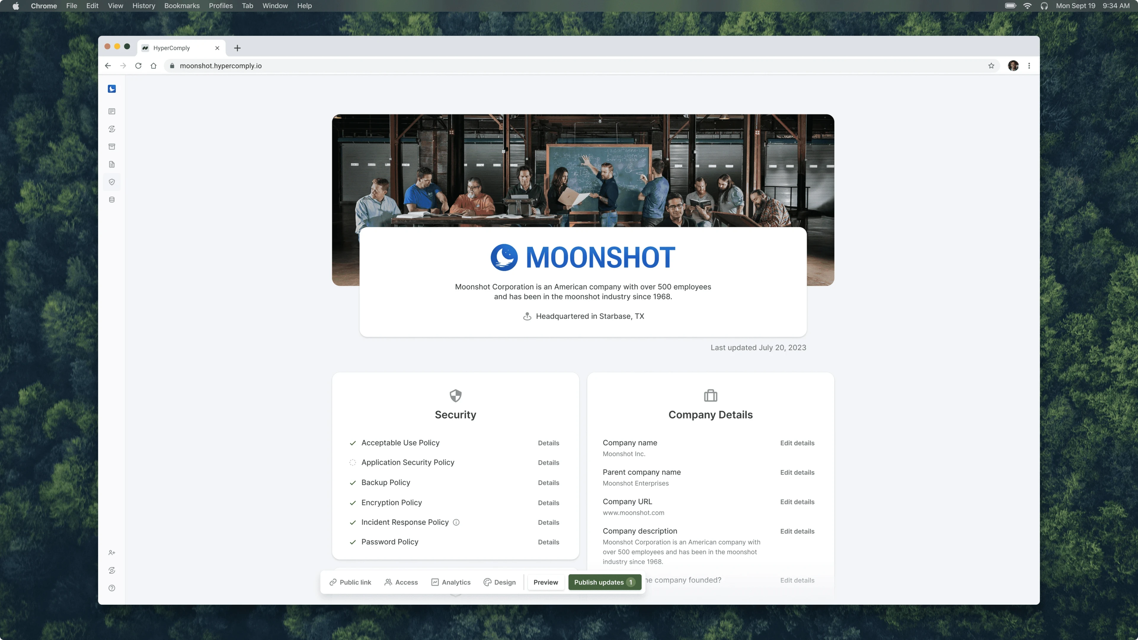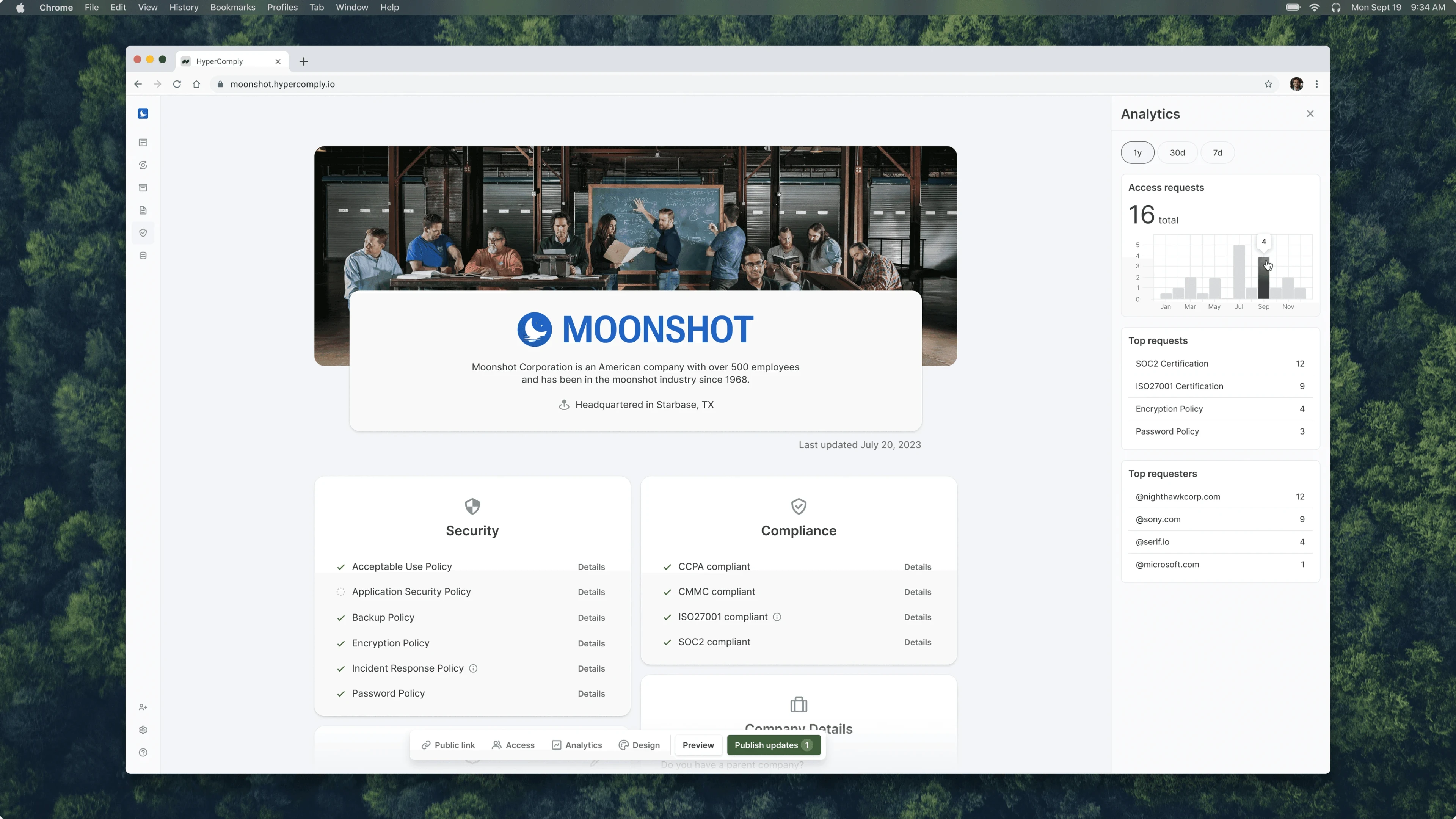 Currently, HyperComply customers are only using the Respond product to autofill security questionnaires. There is an opportunity to bypass this entire process by hosting the company's entire security profile on a public page.